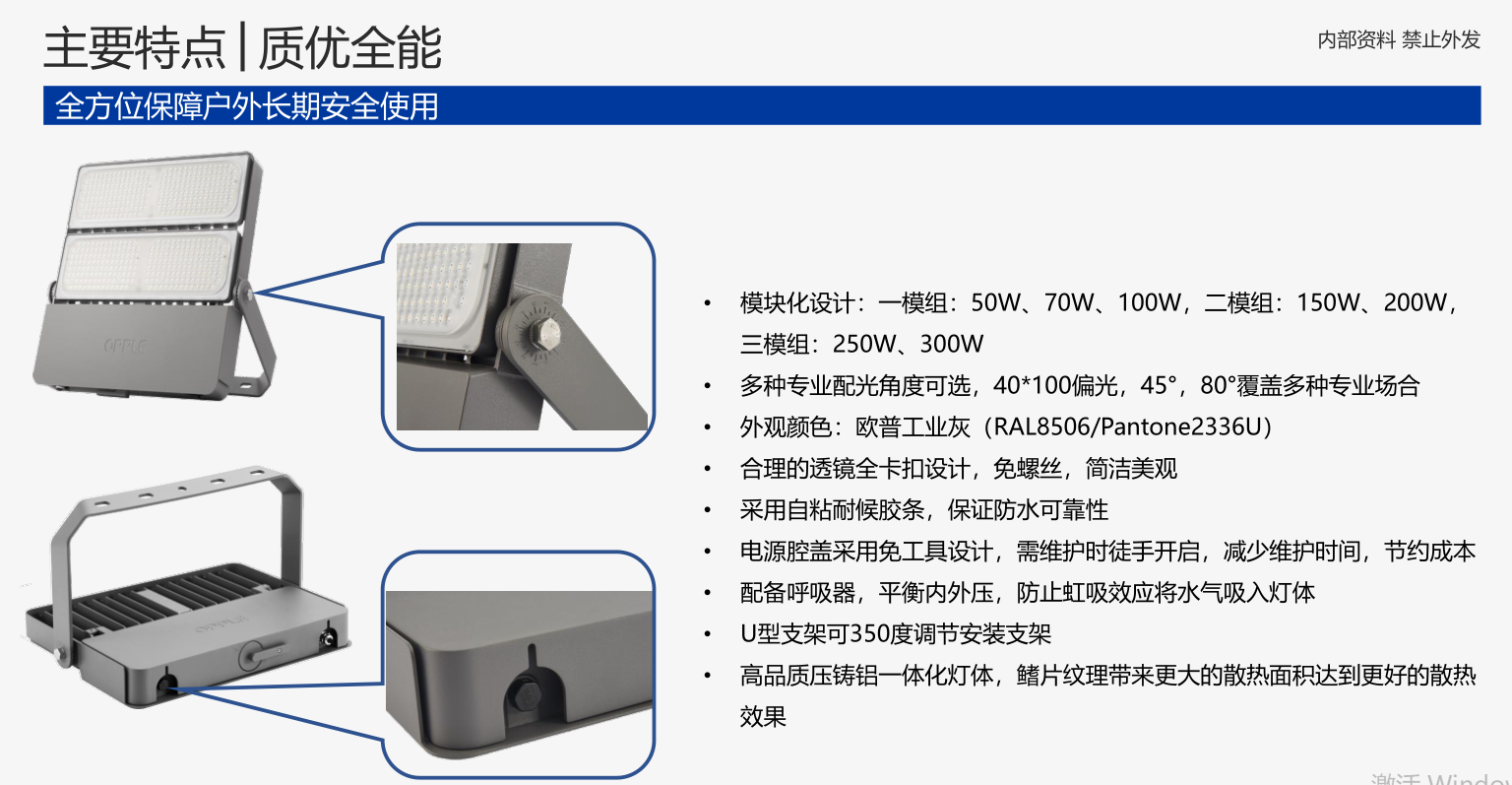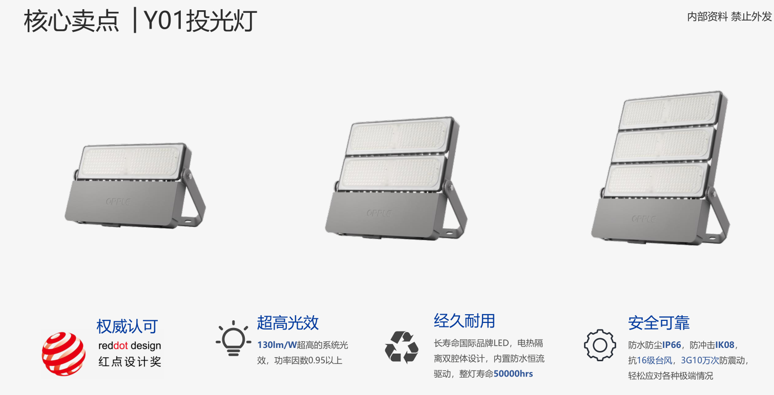 欧普照明室外高光效5万小时寿命IP66防护10KV防浪涌LED投光灯Y01