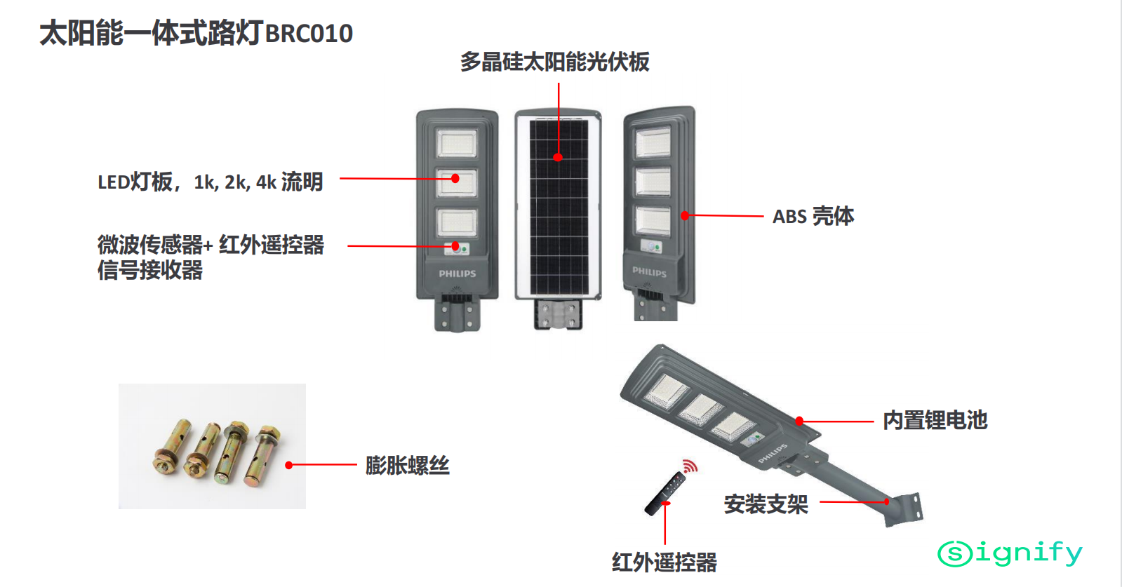 PHILIPS飞利浦明欣BRC010太阳能LED路灯带遥控和微波人体感应防水IP65