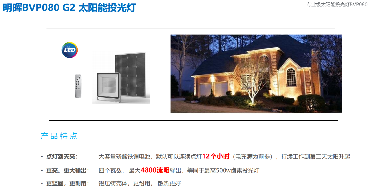 PHILIPS飞利浦BVP080太阳能LED泛光灯/太阳能投光灯/太阳能壁灯防水IP65