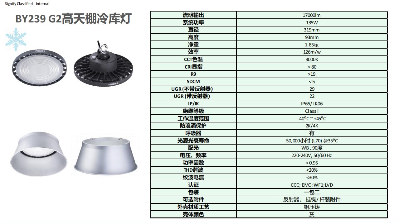 飞利浦BY239P第二代明晖LED高天棚冷库灯 零下40℃都可以使用
