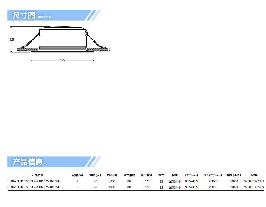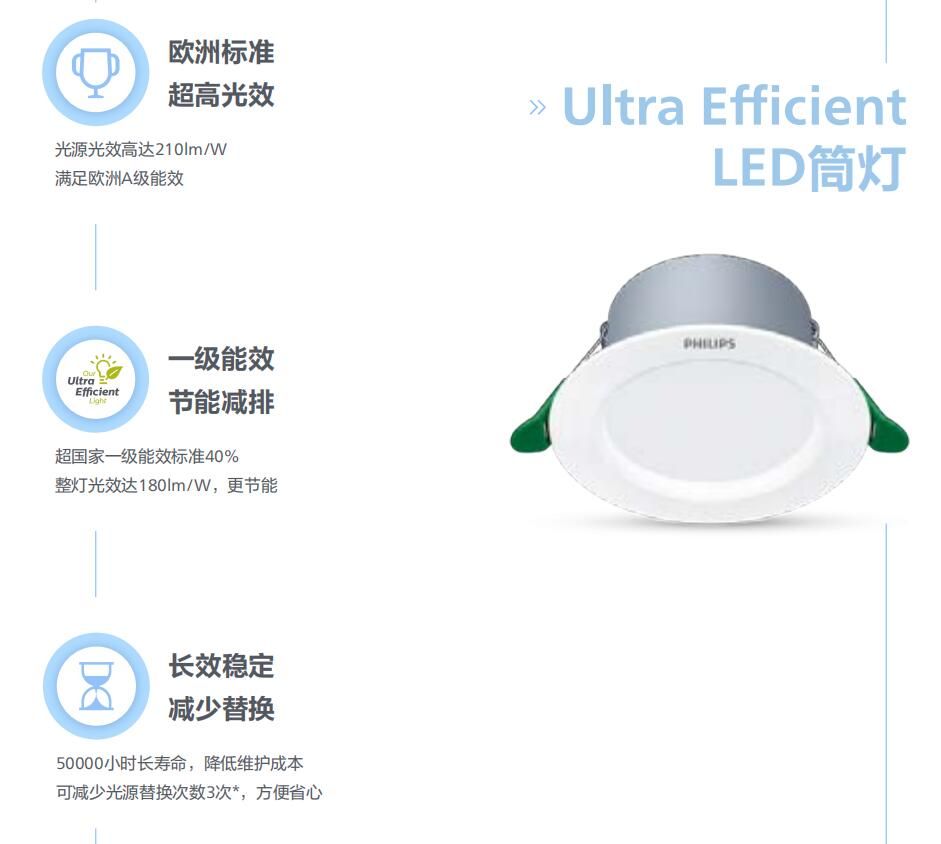 飞利浦LED筒灯长寿命ULTRA EFFICIENT RD 2W节能型